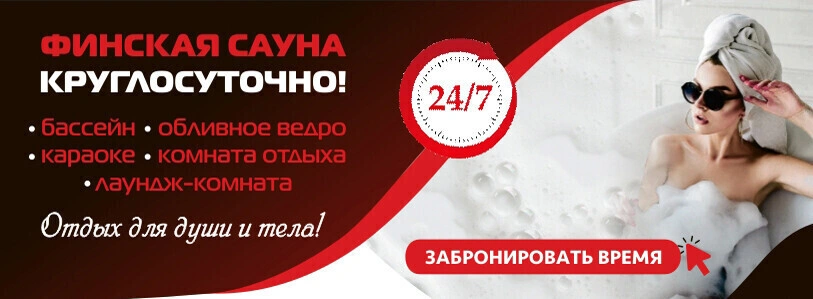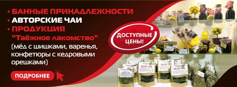 Финская сауна с возможностью применения аромомасел. Комната отдыха с кроватью и телевизором с почасовой оплатой. Караоке. Чаи и продукция «Таежное лакомство».  Современная сантехника, мебель и оборудование. Соблюдение всех видов безопасности. ...